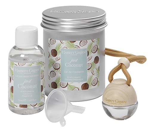 Hassett Green’s Car Air Fresheners are a stylish & effective way to fragrance your car or even small rooms and cupboards. Each kit comes complete with a refill bottle to give you in excess of six months of use. A Rich Creamy Coconut Fragrance Made in the UK Always follow the instructions provided.