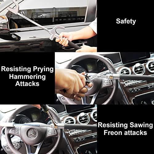 Tevlaphee Steering Wheel Lock For Cars,Car Steering Wheel Lock,Vehicle Anti-Theft Lock,Adjustable Double Hook Universal Fit Emergency Hammer Window Breaker Self Defense Heavy Duty Secure (Black)