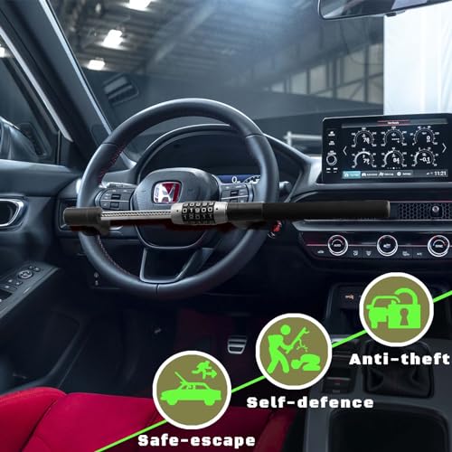 【Friendly Design】 The adjustable steering wheel lock easy to use and storage.Twin hook allows the lock to hood tightly and firmly.when you locked the steering wheel,the lock can automatically adjusted according to the diameter of the steering wheel.No one open the lock without password.High security.