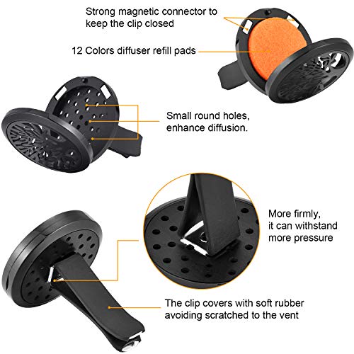 Easy to use: add the essential oils on the replaceable felt pad and clip it to the car vent, turn on the ventilation of your car for a boost of fragrances