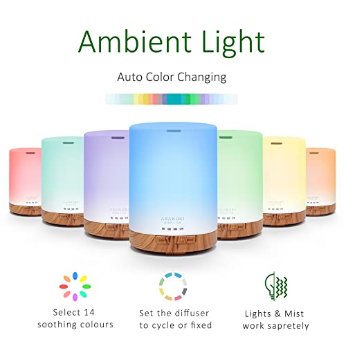 ASAKUKI 300ml Aroma Diffuser for Essential Oils with 6Pcs*10ml Pure Essential Oil Gift Set, Cool Mist Essential Oil Diffuser with 4 Timer Setting, 15 Color Lights, Auto Shut Off