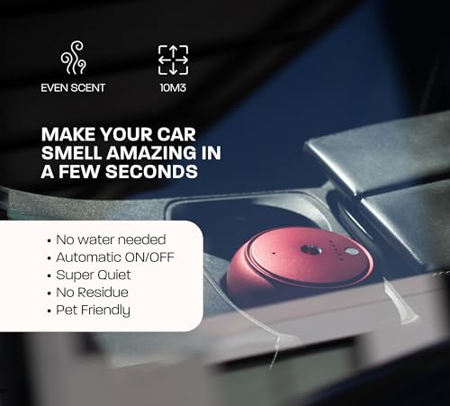 Ombiance Car Air fresheners | Essential Oil Diffuser | No Water Needed – Pure Aromatherapy | Car accessories interior | Super Quiet – Car air fresheners | Even fragrance oil | Easy to Clean (Red)