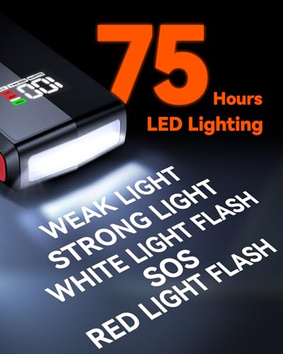 【Ultra Bright LED Flashlight & SOS】VANTRUE JS1 car battery jump pack bright LED flashlight with 5 modes adds extra utility in emergency situations. White LED light can be used to illuminate the search for items in the dark and this car battery booster jump starter can be used to send SOS signals if you’re deep in the mountains, while red LED light penetrates even in fog or darkness for excellent visibility. It is the most useful partner in critical situations when you are camping and travelling.