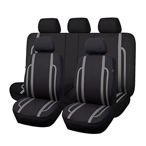 Flying Banner Universal Polyester Car Seat Covers Vertical Bar Splicing Design Airbag Compatible Protector (Full Set, Black and Grey)