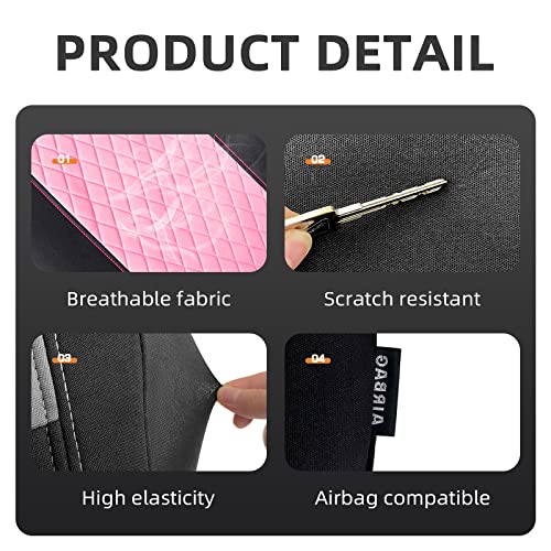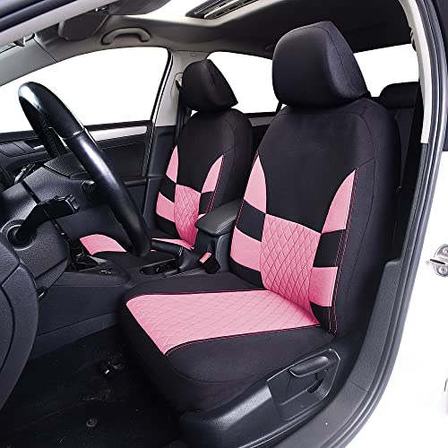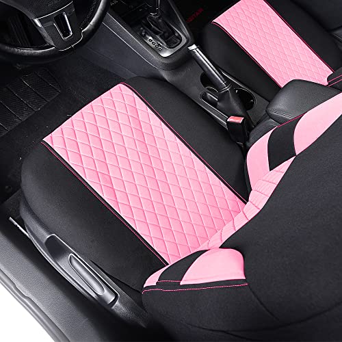 TOYOUN Car Seat Covers Full Set, Universal Seat Covers for 5 Car Seater Front Bucket Seat Covers and 50-50 or 60-40 Rear Split Bench Back Seat Covers Auto Seat Covers Set Two Tone Black & Pink Fabric