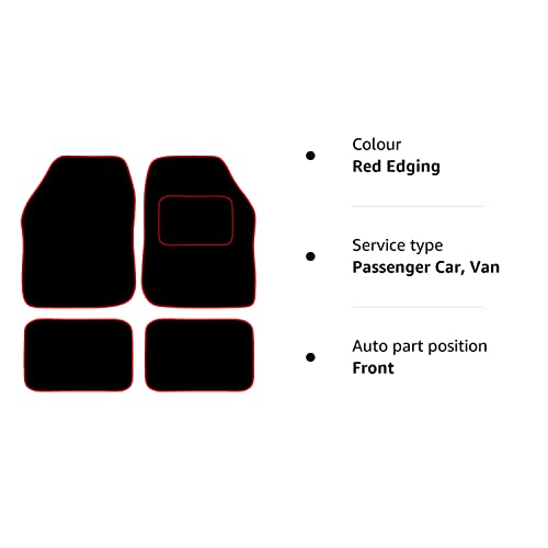 Carsio Universal Car or Van Floor Mats 4PC Set Non Slip Carpet with Red Edging