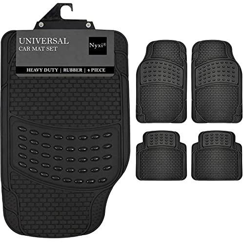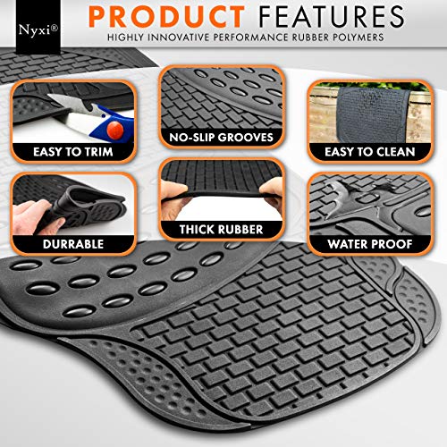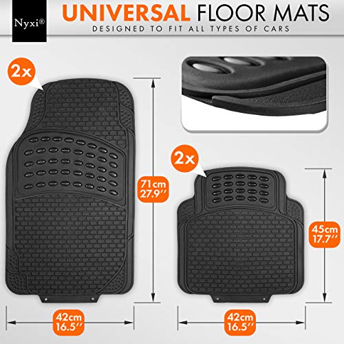 Nyxi 4 Piece Rubber Car Mat (Front + Rear) Universal Non-Slip Deep Dish Heavy Duty for Cars SUV Truck and VAN, Water Proof, All Weather