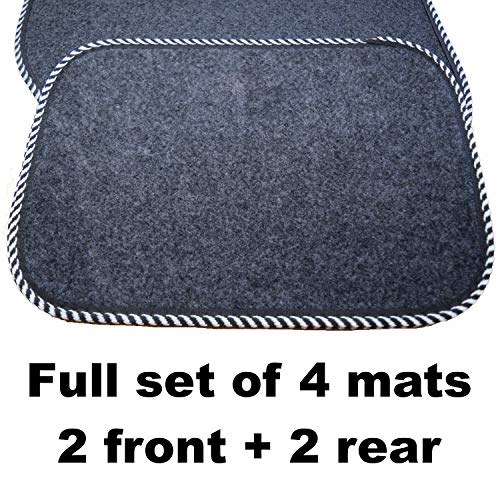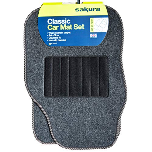 Sakura Car Mat Set of 4 Heavy Duty Hard Wearing Carpet Water Repellent Flexible Grey with Silver Trim Universal Fit Front Rear Heelpad Non-Slip Backing RHD
