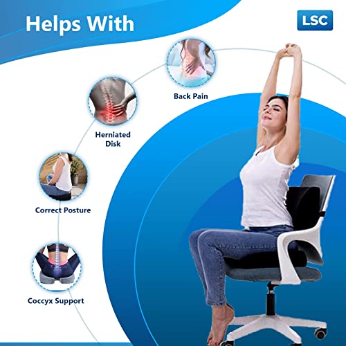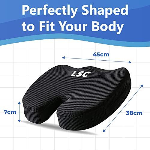 LSC Chair Cushions for Office Chair Memory Foam Non-Slip Sciatica & Back Coccyx TailbonePain Relief Seat Cushions for Office Desk, Gamming Chair, Wheelchair, Car Seat, Sciatica, Tailbone Pain (Black)