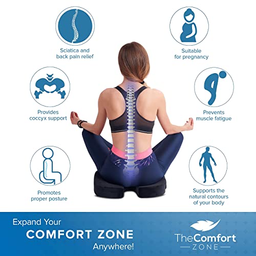 TheComfortZone Seat Cushion for Office Chair Lower Back Pain Relief, Non-Slip Coccyx Cushion Enhances Posture & Support, Hemorrhoid, Sciatica Memory Foam Chair Cushion for Car, Wheelchair, Gaming