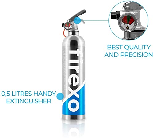 Firexo All in One Stainless Steel Fire Extinguisher 500ml Chrome – Multipurpose Extinguisher for ALL FIRES inc. Li-ion Battery Fires! – Emergency Safety Equipment for Home Car Indoor/Outdoor