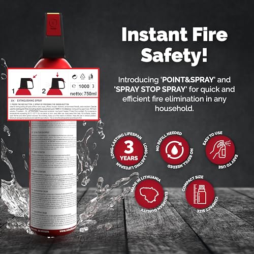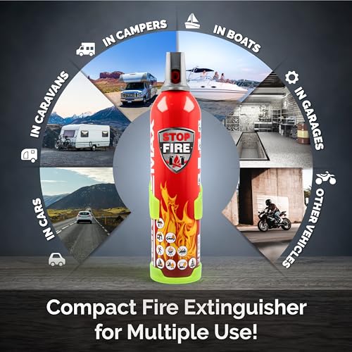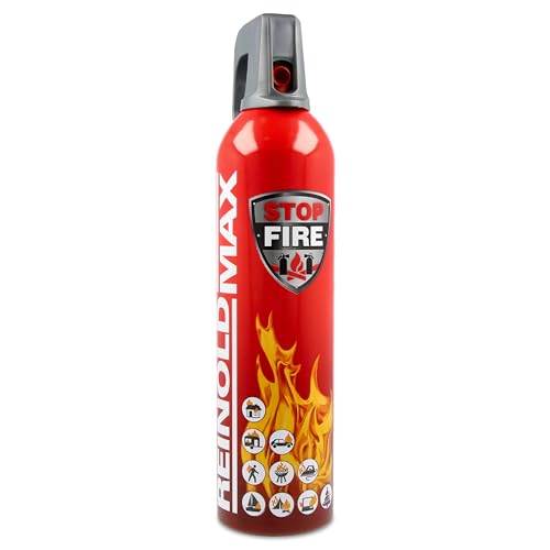 ReinoldMax Small Fire Extinguisher for Car Camping, Caravan Kitchen, Campervan Accessories UK, Gas BBQ – Compact Aerosol 5 in 1 Fire Extinguisher 750ml Suitable for ALL FIRES and Lithium Batteries