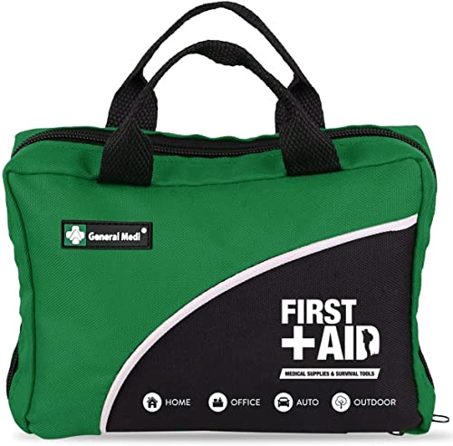 General Medi 160 Piece Compact First Aid Kit Bag – Including Cold (Ice) Pack, Emergency Blanket, Moleskin Pad,Perfect for Travel, Home, Office, Car, Camping, Workplace (Green)