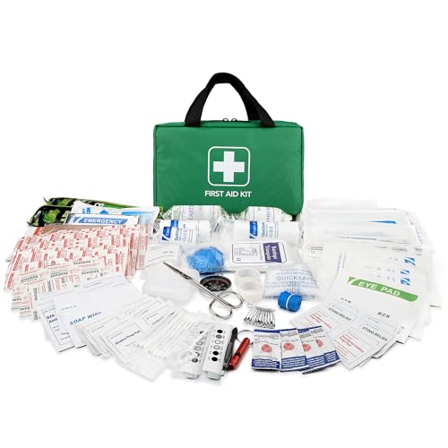 Kitgo 220 Piece First Aid Kit, Includes Emergency Foil Blanket, Scissors and Bandage, for Car, Travel, Home, Workplace, Camping, Hiking,Outdoor and Sports(Green)