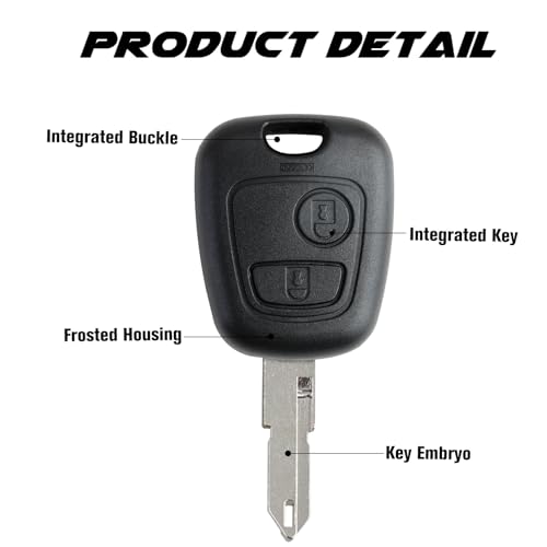 - Rediscover the luxury of a high-functioning remote with our 2-Button Key Fob Shell Replacement, meticulously crafted for an array of Peugeot and Citroen vehicle models. Fusing elite craftsmanship with unparalleled precision, this shell promises compatibility, resilience, and an effortlessly sleek appearance.