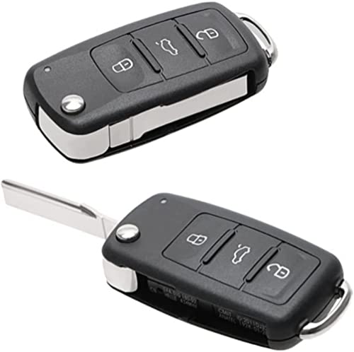 Betterher 2pcs Replacement folding car 3-Button key housing shell with blade key compatible for VW Volkswagen Golf Mk6 T1iguan Skoda Octavia Polo Passat CC SEAT