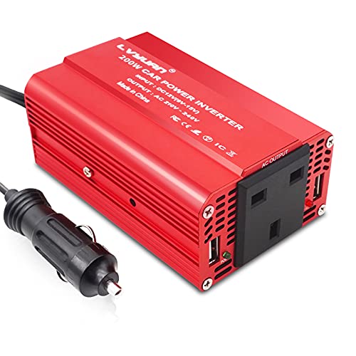 Yinleader Power Inverter 200W 12V to 240V UK Socket Dual USB DC TO AC Converter Car Cigarette Adapter