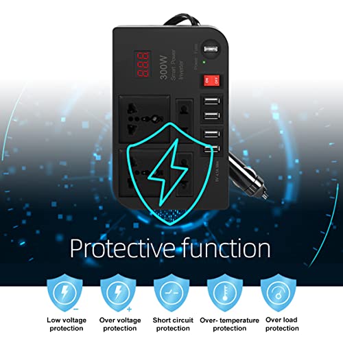 Yurayisen 300W Car Power Inverter 12V to 220V Converter, Car Inverter with 4 AC Outlets 4 USB Ports, for Laptop Tablet Electronic Products With LED Display