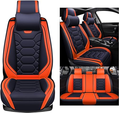 Specification: Eunncu Universal Car Seat Covers Waterproof Leather Full Set, Can Protect Front and Rear Seats, To Fit Most Cars, Side Airbag Compatible, Orange