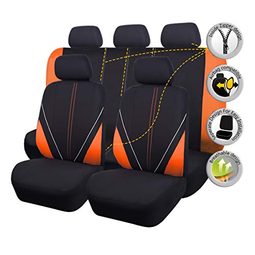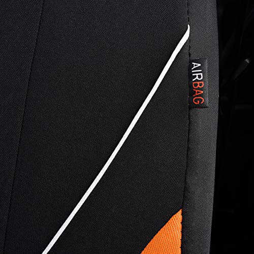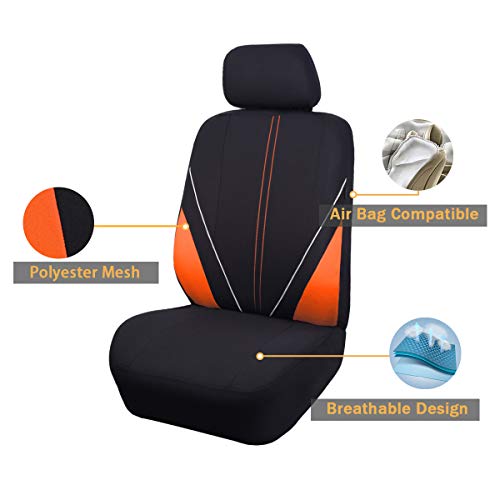 Flying Banner Universal Breathable Mesh Cloth Car Seat Covers Full Set Airbag Compatible Cushions Protector (Black and Orange)