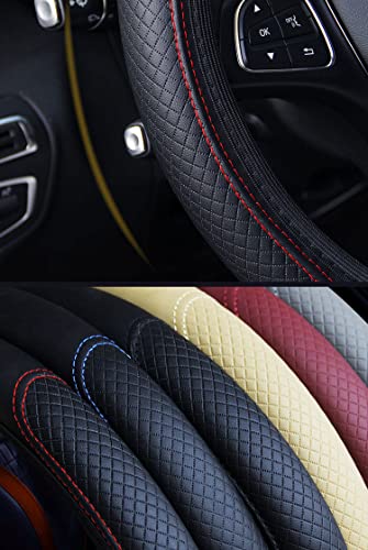 Albedel Microfiber Leather Steering Wheel Covers Anti-Slip Universal Car Steering for Car Accessories Auto Car Without Inner Ring (Black&Red)