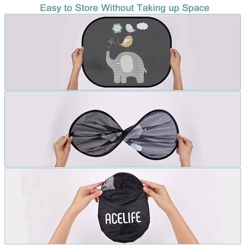 ACELIFE Car Window Shades for Baby, Car Sun Shade for Baby Kids with UV Protection, Sun Visor for car, Sun Screen for Car Window Baby,Side Window Car Sunshades with Cute Animal Motifs, 45 * 35.5 cm