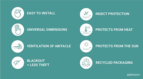【Universal Size】 These small sun shades are compatible with most car models of small city cars, thanks to its stretchy and super elastic material. Dimensions: H 47.5 x W 49 x H 5 / H 82 x L. 92 cm maximum