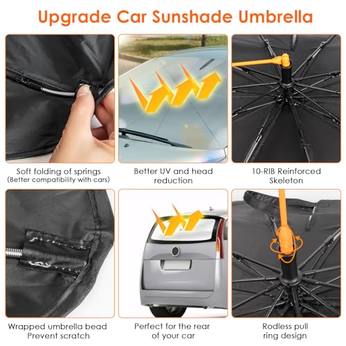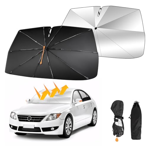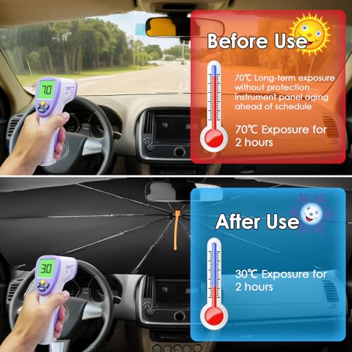 Easy to Fold and Store: The umbrella car windshield sunshade works like a regular umbrella, very easy to open and fold in seconds. Car sunshades are very convenient for daily use. The foldable design is convenient for storage and does not take up space in the car.
