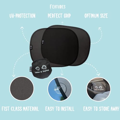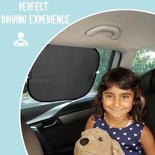 🌞 UNIVERSAL FIT – With dimensions of 44 x 36 cm, our window sun shades are universally sized to effortlessly accommodate SUVs, estate cars, limousines, and compact vehicles.