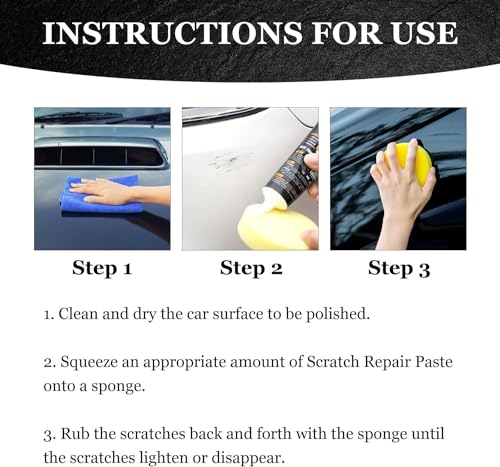 【Easy to Use】Easy to use. Clear the scratches area, remove dirt and wax, then apply the cream onto the sponge. Rub the scratch until it disappears, then wipe off the cream wax.