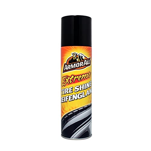 Armor All Extreme Tire Shine delivers intense, mirror-like shine and a rich black look in a convenient aerosol spray. Plus, it’s fortified with conditioners that protect & nourish your tires, preserving their natural beauty for the long term. Armor All Extreme Tire Shine is a silicone based product that provides protection and the ultimate “wet” look shine. Once sprayed it starts to work by coating the tire with a protective film that dries to leave an ultimate shine.