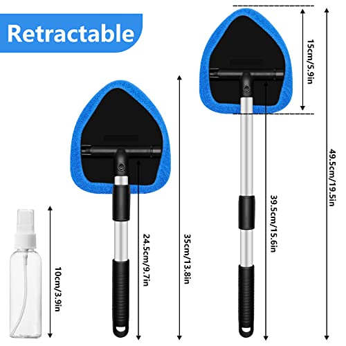 JNBGTU Car Window Cleaner Kit Windscreen Cleaner Inside Tool, Multifunctional Expandable Vehicle Interior Cleaner Equipment, with 3 Spare Microfiber Pads 1 Spray Bottles