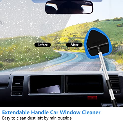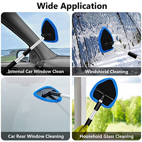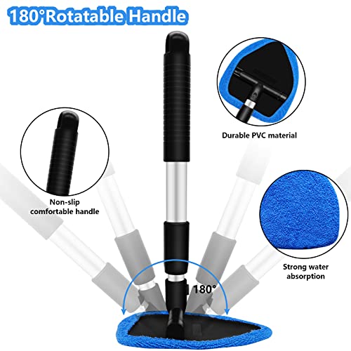 [Package Included] The car window cleaner kit come with 1 extendable handle, 1 removable panel (triangle), 4 reusable microfiber pads and 1 spray bottle. Auto Inside Glass Wiper Kit can remove more dirt and dust, easy to clean the hard-to-reach areas effortlessly.
