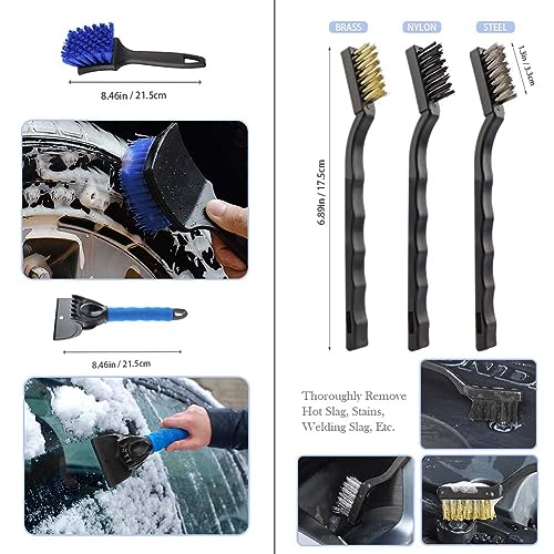 【Car Interior Cleaning】5 Different sizes car detailing brushes can meet any cleaning needs of small cracks, corners, lug nuts, wheels, car seats, engine bays, dashboards, signs and more, The air vent brush can effectively clean the air conditioning vent, including 1 stainless steel brush, 1 brass brush and 1 nylon brush. 3PCS different materials bristles can clean rust and oil stains.