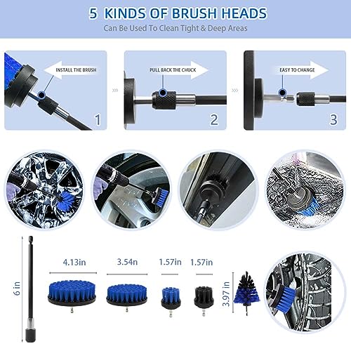 【Car Cleaning Tool Set】The brushes of the car cleaning brush set contain five brush heads of different sizes, which can meet the needs of different gaps and large-area cleaning such as tires. It will possibly clean the mud and sand attached to the surface. The included drill brush extension can make cleaning more effortless to achieve tight points or hard-to-reach places. Car polishing sponge pad kit can be utilized for polishing to give the car a new look.