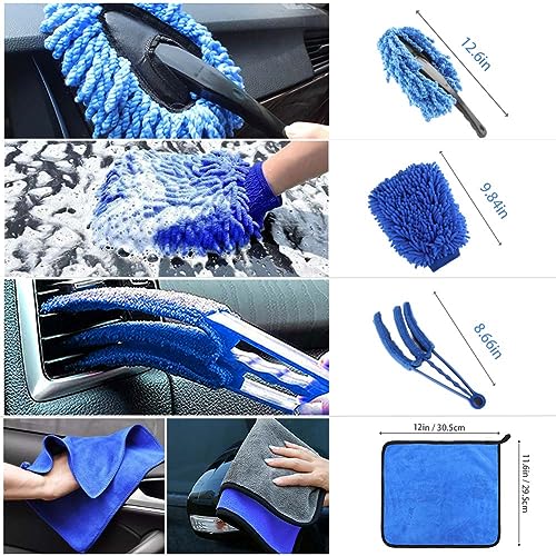 【Car Exterior Cleaning】:The chenille car wash mitt is made of extra plush microfiber that holds tons of soap and effectively clean the out of doors of the car, the snow brush shovel can quickly separate the ice and snow from the car without hurting the hands or the car. Tire brushes are easy to clean large areas of tire stains. The Soft microfiber cleaning cloth can effectively absorb water and put off dust, wipe the glass without water stains.
