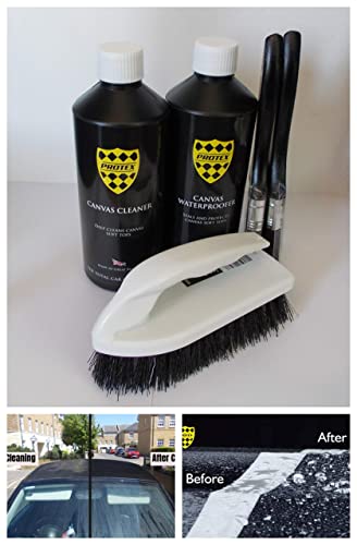Specification: PROTEX Convertible Soft Top Care Kit with Canvas Cleaner & Waterproofer – 500ml, Two Applicator Brushes and One Soft Top Cleaning Brush – BRUSH KIT.