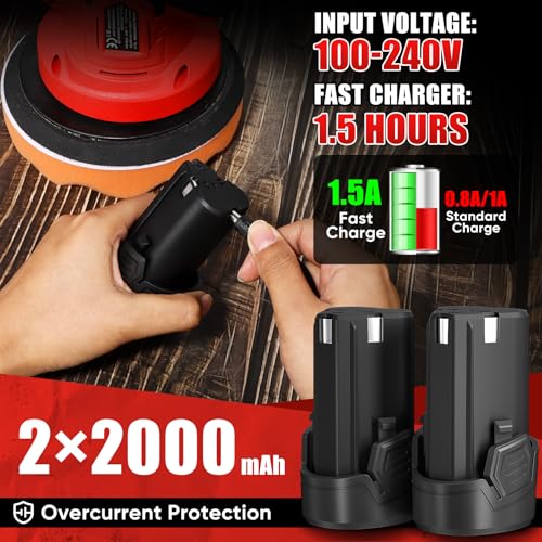 [Battery upgrade]: This polishing machine is equipped with two 12V, 2.0Ah batteries, which can give 3 hours of work (2 batteries). Equipped with a fast charger, you do not need to worry about running out of power when the usage of it outdoors; it’s ideal for outside polishing.