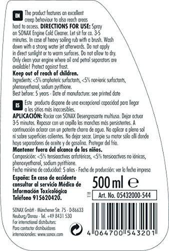 SONAX Engine Cold Cleaner (500 ml) – The product features an excellent creep behaviour to also rech areas hard to access. | Item-No. 05432000-544
