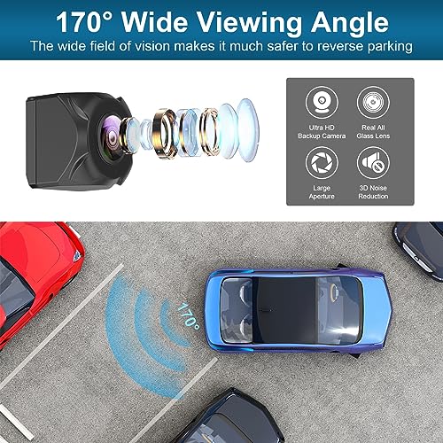 1) 【170 Degree Ultra Wide Angle】This backup camera is equipped with a 170 degree wide angle fisheye lens. The blind spots that cannot be seen in the rearview mirror of the car are now clear at a glance. Combined with a high-sensitivity sensor, it can detect walking children and small obstacles that are difficult to see in the rear field of view, thereby supporting reverse parking with peace of mind.