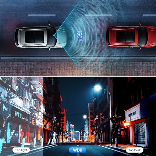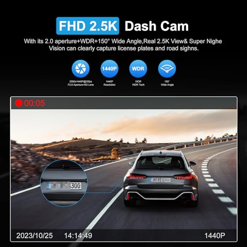 【Real 2.5K Dash Cam Front】 Ultra HD 2560X1440P at 30 fps video enable to capture every road conditions and license plates details. 150° Ultra-wide field of car cameras reduces the blind spots and captures more beautiful scenery.