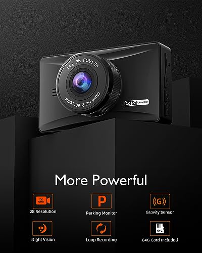 ✅【2K Video Clarity】- Capture important details with our 2K dash cam. The improved video clarity ensures that essential elements such as license plates and road signs are recorded accurately better then 1080p