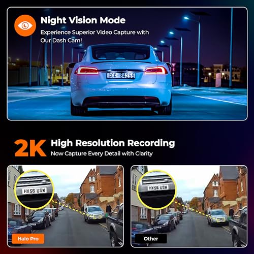 ULTRA WIDE ANGLE VIEWING – Halo Pro 2k 140° Ultra Wide Angle viewing provides a wide field of vision to capture the details before, during and after an incident. Wide Quad HD Loop producing sharpness in imagery that amazes even with it’s compact size. The dual car camera has a 120° Rear Dash Cam to capture details even the human eye can’t see. Our safety first dash cameras exclude distracting screens allowing for a more compact fitting and no dangerous night-time glare.