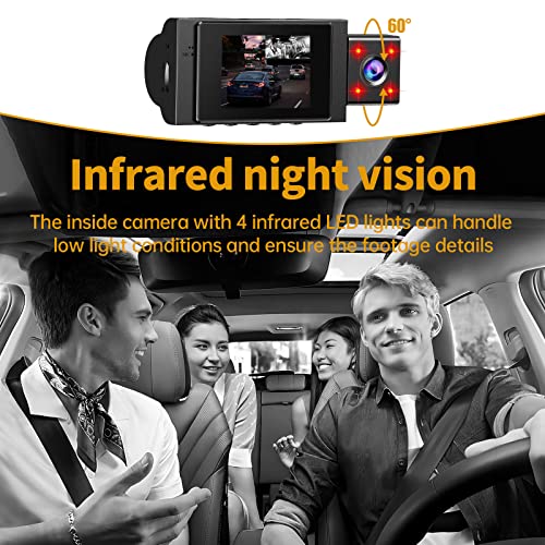 Yansoo Dash Cam Front and Rear Inside, 3 Channel Dash Cams 1080P Dashcam Car Camera Video Recorder with Infrared Night Vision,170°Wide Angle,Parking Monitor,Loop Recording,G-sensor Dash Camera for Car