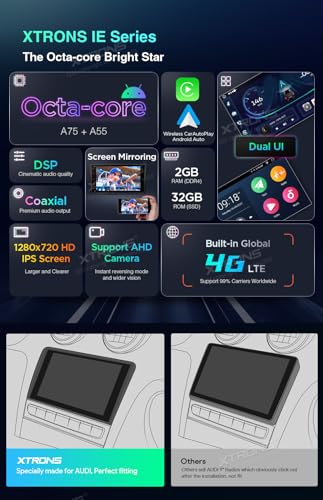 XTRONS Octa Core Android 13 Car Stereo Auto Player 8 Inch GPS Navigation Built-in 4G Wifi Wireless Car Play Android Auto DSP RDS Radio A2DP Bluetooth Support AHD Camera DVR DAB+ for AUDI A3 S3 RS3