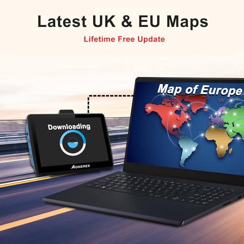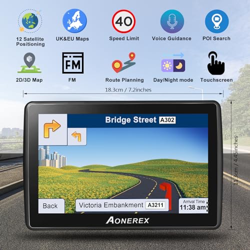 Aonerex Sat Nav, 7 Inch Touchscreen GPS Navigation for Car Truck Lorry Motorhome Caravan, Latest UK Europe Maps, Voice Guidance, Speed Cam Alerts, POI Search, Lane Assistance, Lifetime Free Map Update