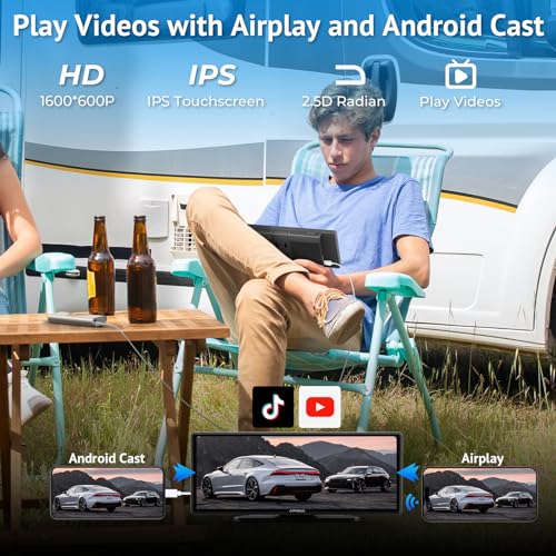 【Upgrade Android/IOS Mirror Link】Use Apple AirPlay and Android Auto to connect your smartphone to the car screen, then you can play videos from Youtube or TikTok on the CarPlay screen. You can choose wired connection or wireless connection according to your preferred connection method (both iPhone and Android are available). The screen is made of 2.5D curved glass, which keeps the screen clear even in direct sunlight and provides crisp HD visuals and responsive capacitive touch.