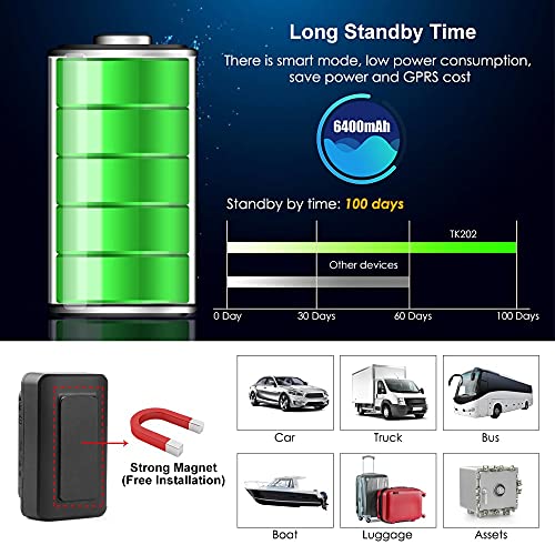 Lightweight GPS Tracker 6400 mAh 3.7V Portable Magnetic Car Tracker Anti Theft Real-Time GPS Tracking Device with App, No Wiring Required, No Monthly Fee