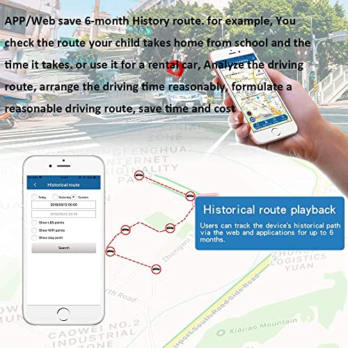 History Route: APP/Web save 6-month History route. for example, You check the route your child takes home from school and the time it takes. or use it for a rental car, Analyze the driving route, arrange the driving time reasonably, formulate a reasonable driving route, save time and cost