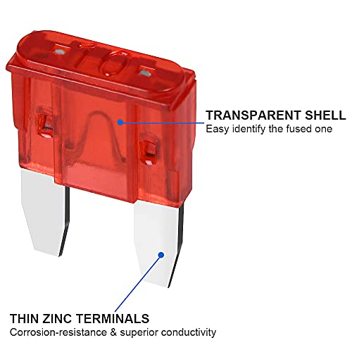 【Easy to install】The rated current code is engraved on the top of each fuse shell, and different colors correspond to different codes. It can be quickly and reliably identified, installed, and the transparent shell can be used to view the link status and quickly detect the fuse. The clip allows you to install the fuse stably without worrying about it falling.
